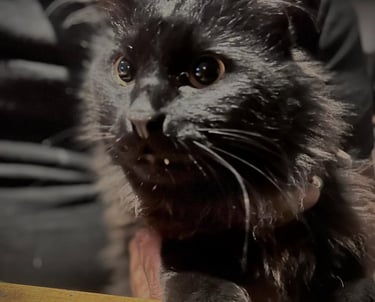 Y si tienes suerte, Furia vendrá a darte la bienvenida: una gatita negra, esponjosa y curiosa, que juega con popotes, ronronea sobre piernas afortunadas y le encanta posar entre tazas y vapores.