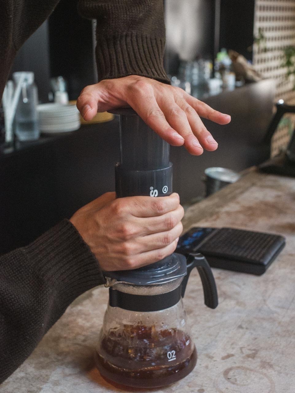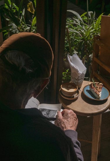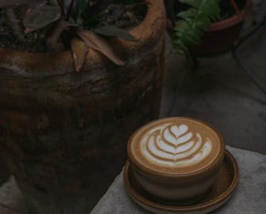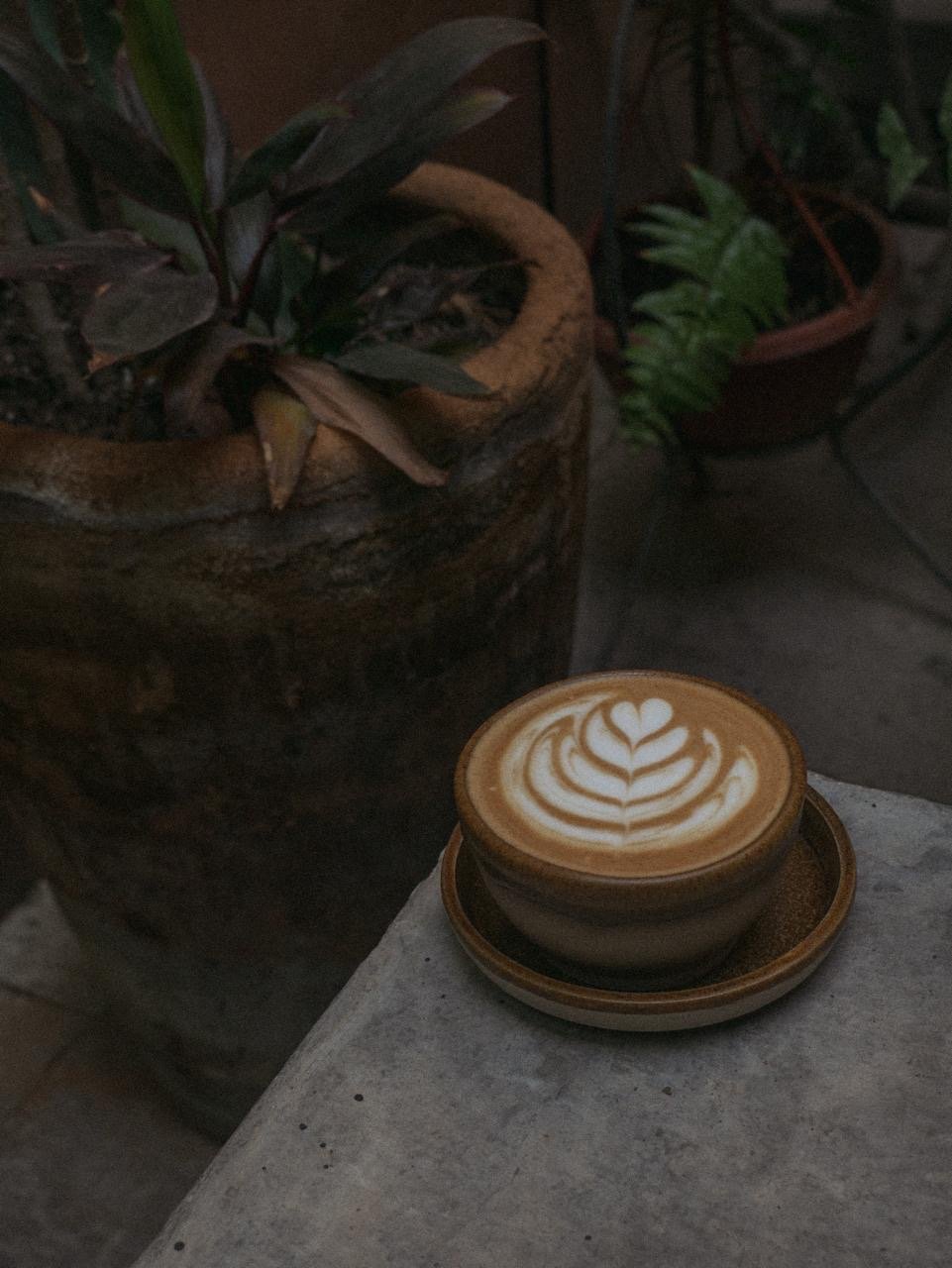 Raíces que trepan por las paredes, hojas que se asoman por las esquinas, brotes que parecen escuchar. Y en medio, el café: servido sin aspavientos, como si cada bebida supiera que nació para acompañar, no para distraer.