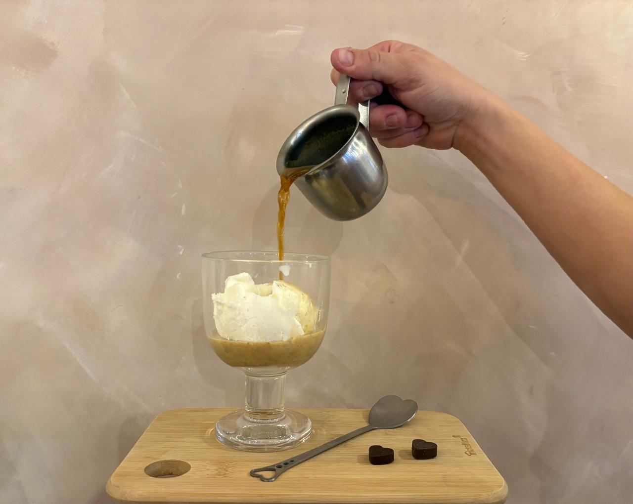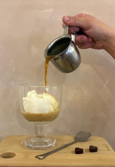 El café también tiene un papel protagónico. Y hay un ritual que une todo: el affogato. Una bola de gelato —el que elijas— bañada en espresso, donde el calor y el frío no se contradicen.