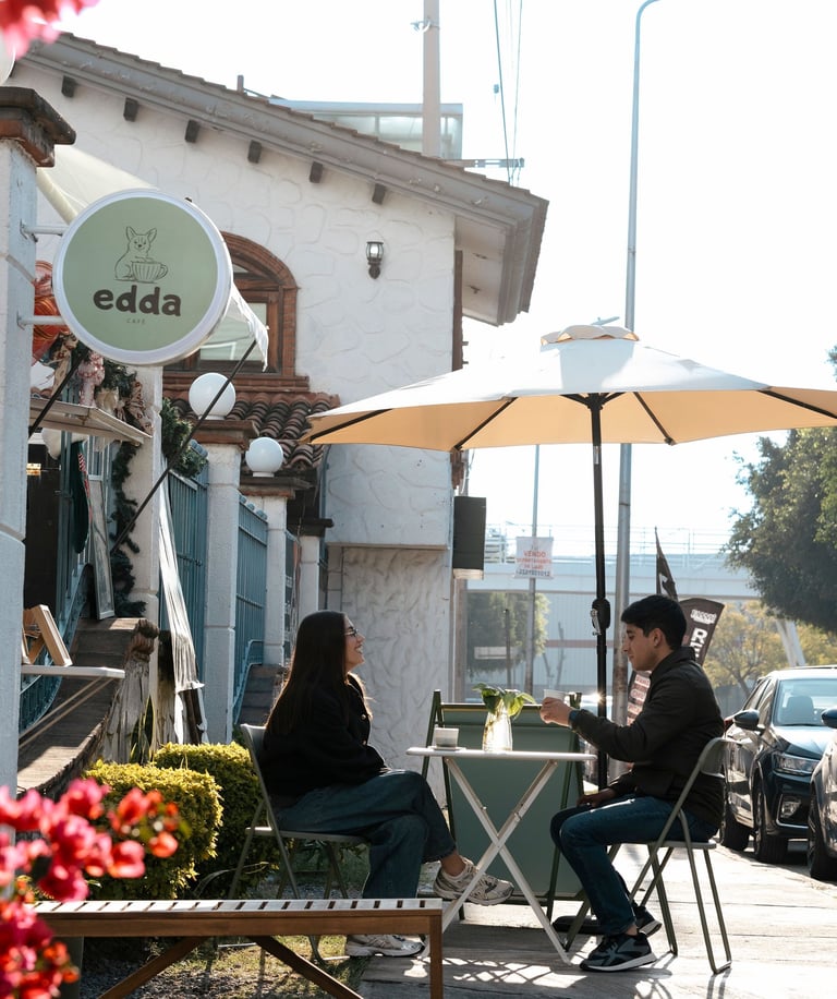 Conversación al sol y café rico