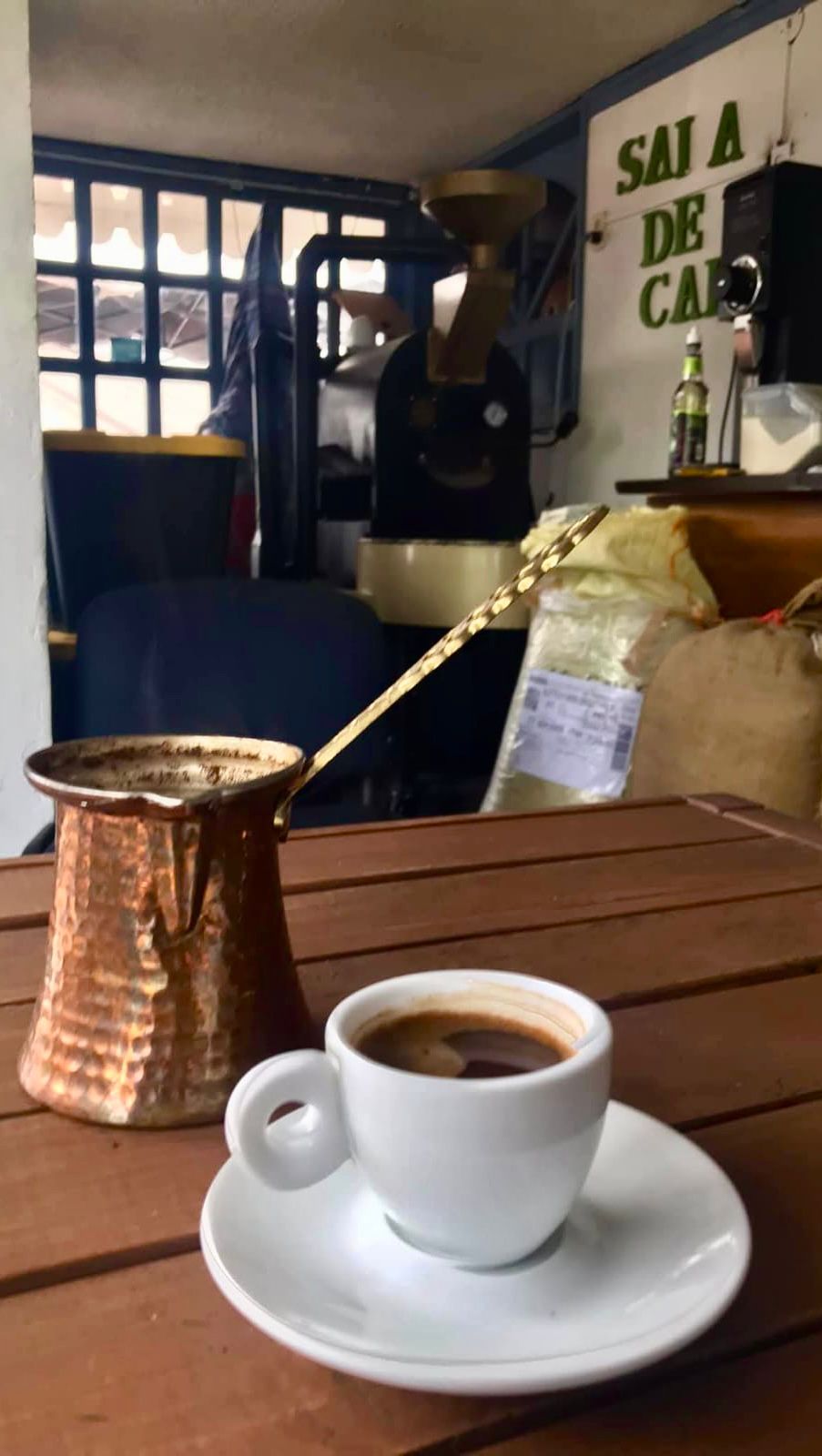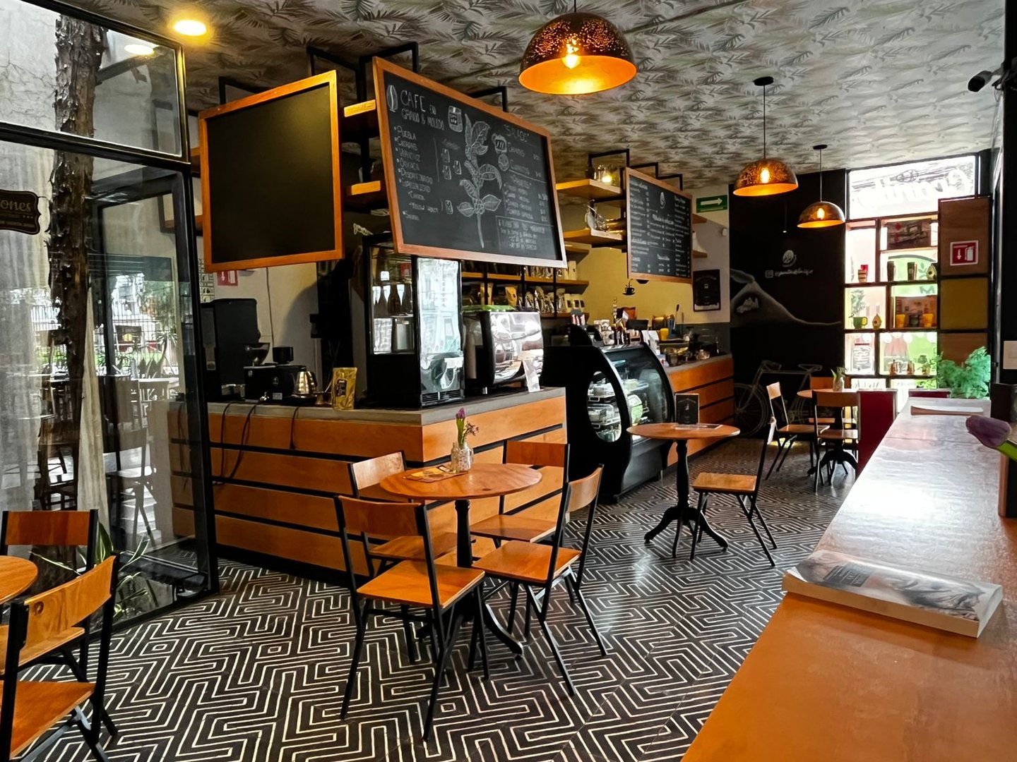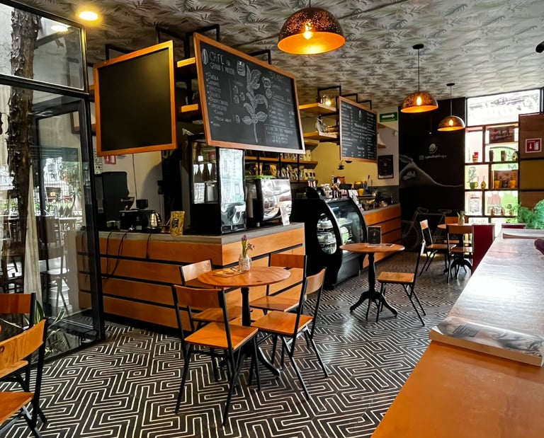 En su sucursal de Cholula, puedes llegar a platicar, trabajar o simplemente quedarte un rato más. Pero si quieres ver el café como oficio, como rutina y como cuerpo en movimiento, ve a su sede frente a La Piedad, en Puebla. Ahí no hay ambiente contemplativo: hay costales, máquinas sonando, gente tostando. Café en acción.