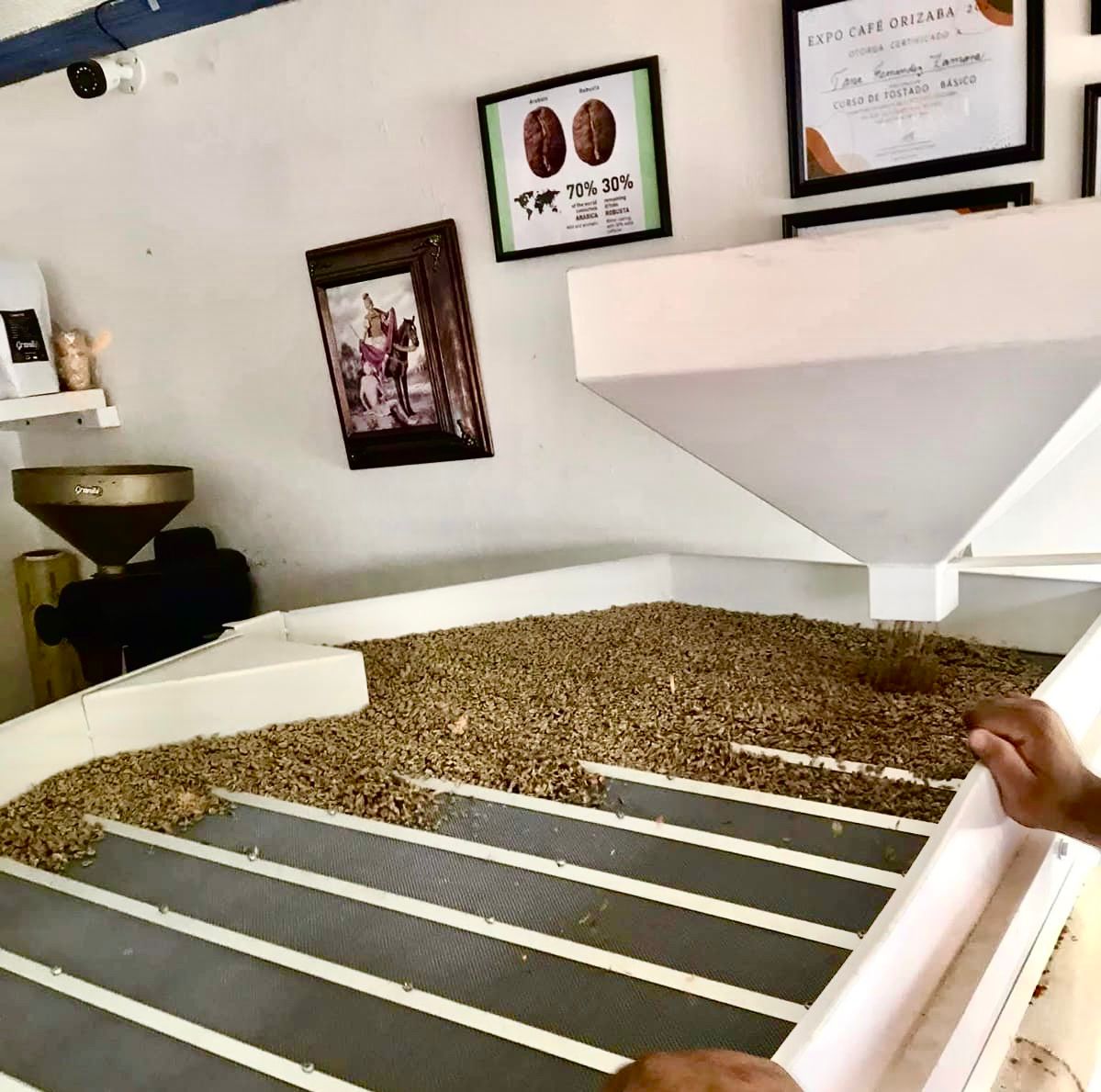 En Granito, el café empieza en el beneficio seco: ahí donde el grano se clasifica y se limpia antes de tostarlo. Ese trabajo no es invisible. Mortean, examinan, clasifican. Toman decisiones a mano y a ojo. Aquí los baristas son también tostadores, y los tostadores también anfitriones.