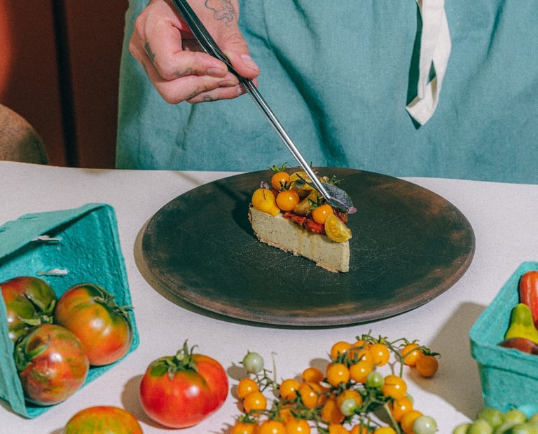 Cactilia —su huerto agroecológico— es el corazón verde de esta cocina: ahí crecen las ideas, los tomates, las flores comestibles, y sabores que no se repiten.