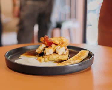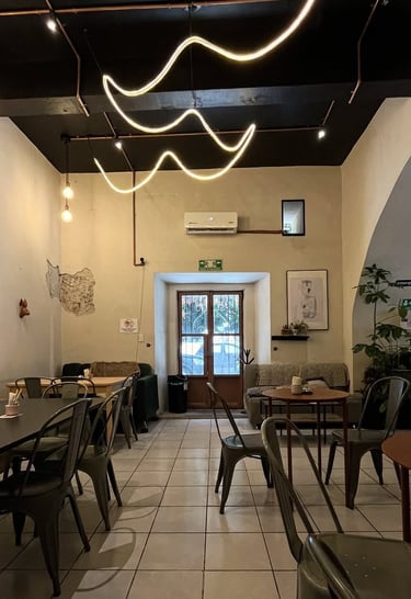 En la barra, el agua cae fina sobre el molido y libera notas que huelen a pan tostado, a cáscara cítrica, a flor después de lluvia. La loza tibia en las manos, el murmullo de la molienda, la luz de Atlixco entrando oblicua: todo está en su lugar para que el paladar lea mejor.