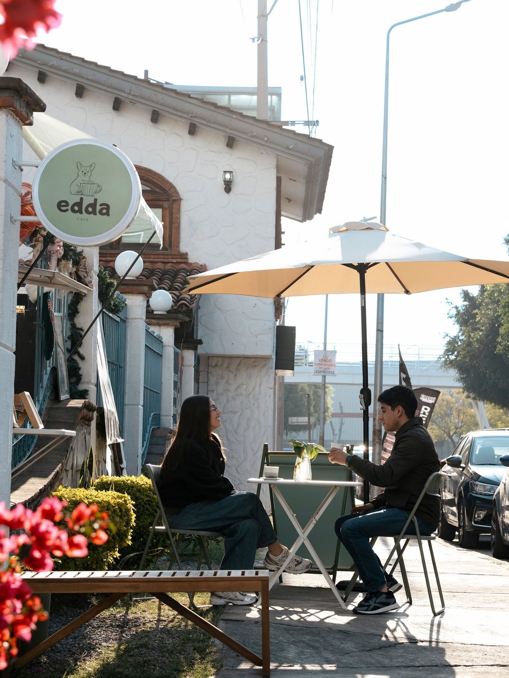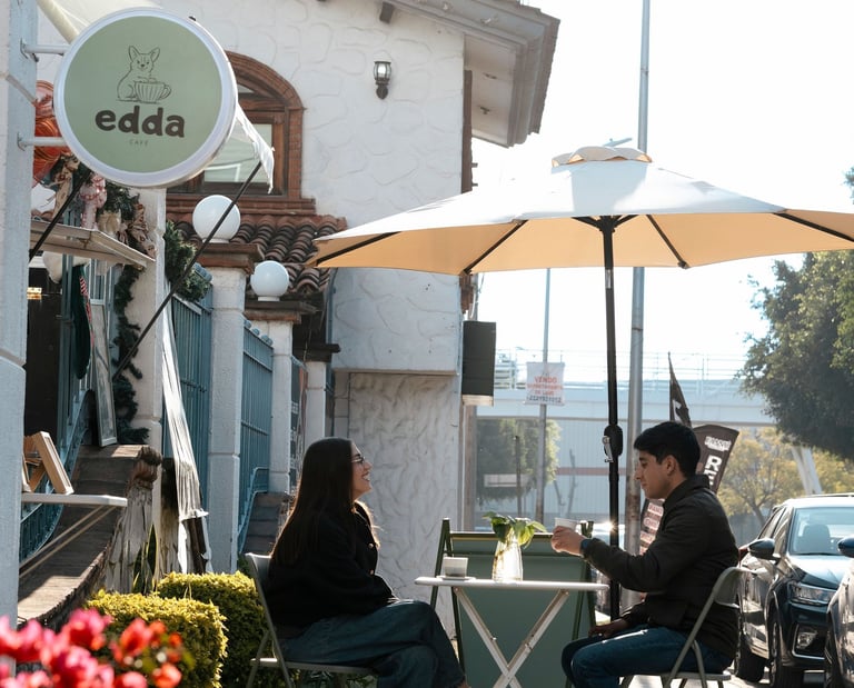 Conversación al sol y café rico