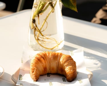 Hojaldre laminado, crujiente, ligeramente caramelizado.